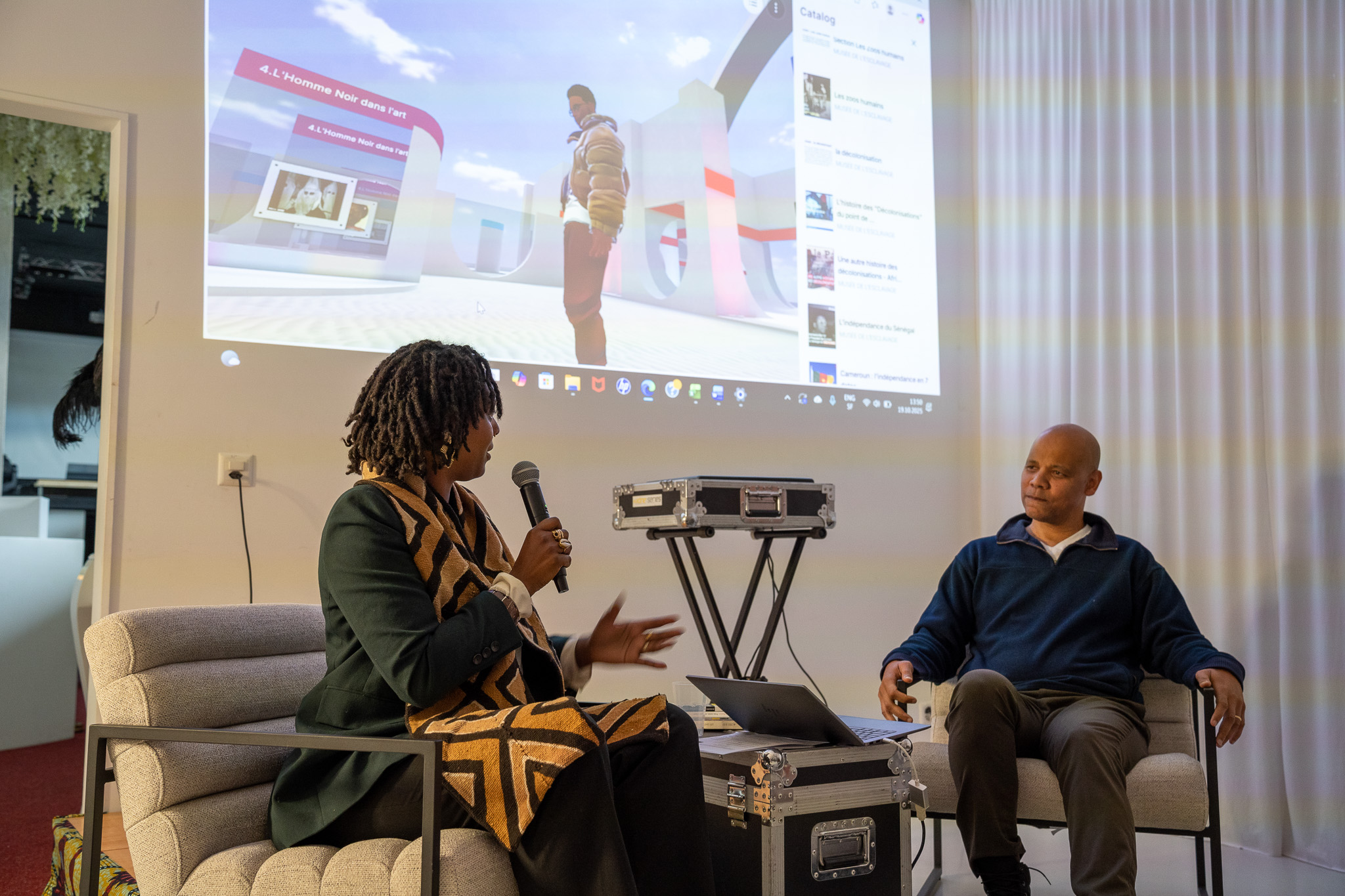 La présentation, menée sous la forme d’une interview avec notre animatrice Laetitia nous a permis de parcourir les différentes parties du musée virtuel MUSEAN, chacune accompagnée d’une vidéo iet d’un commentaire du concepteur expliquant son contexte, et sa portée historique etculturelle.